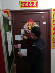 汪斌為業(yè)主進出小區(qū)測體溫 張貼溫馨提示 為居家隔離業(yè)主送快遞