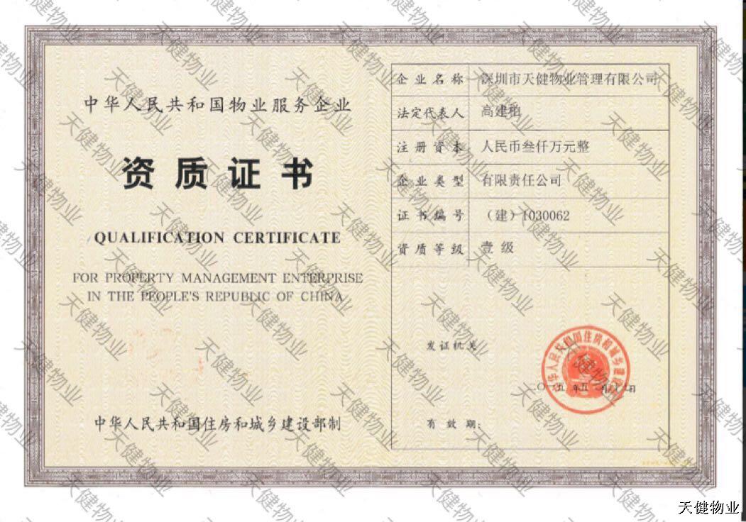 物業(yè)服務(wù)資質(zhì)證書(shū)(壹級(jí))