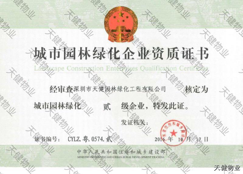 城市園林綠化企業(yè)資質(zhì)證書(shū)(貳級(jí))