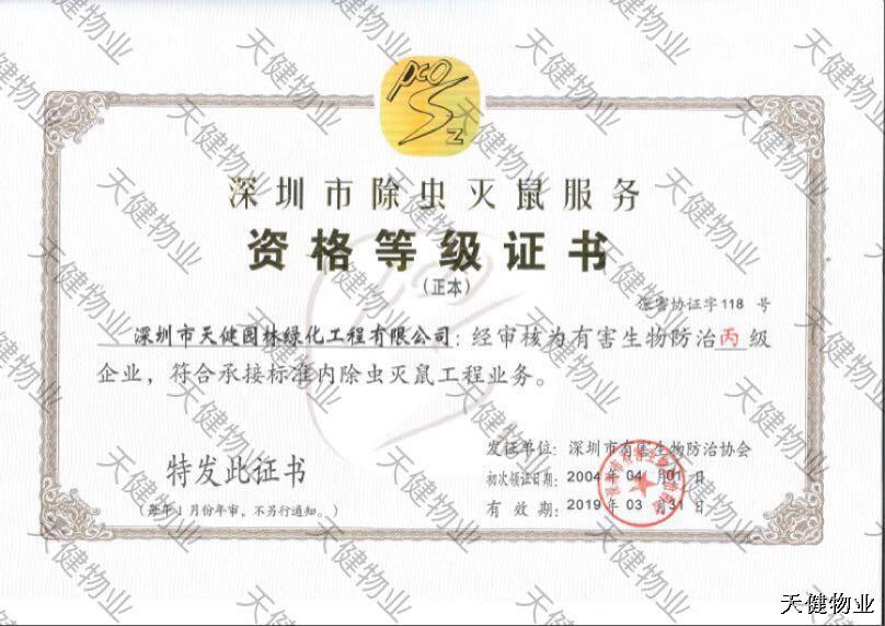除蟲(chóng)滅鼠服務(wù)資格等級(jí)證書(shū)(丙級(jí))