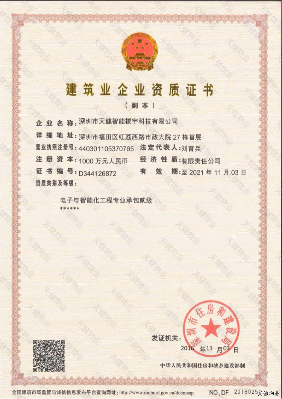 建筑業(yè)企業(yè)資質(zhì)證書(shū)(電子與智能化工程專(zhuān)業(yè)承包貳級(jí))