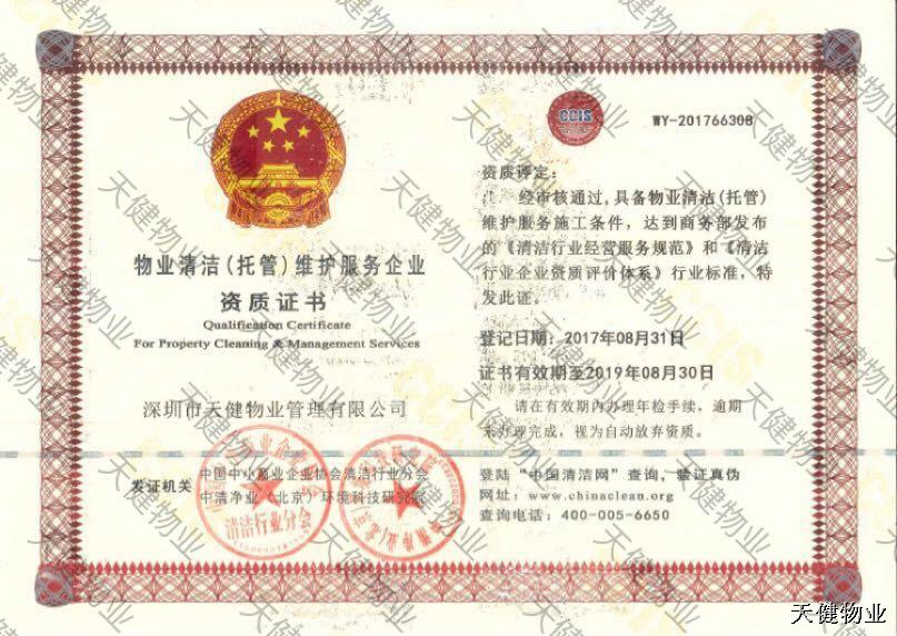 物業(yè)清潔(托管)維護(hù)服務(wù)企業(yè)資質(zhì)證書(shū)