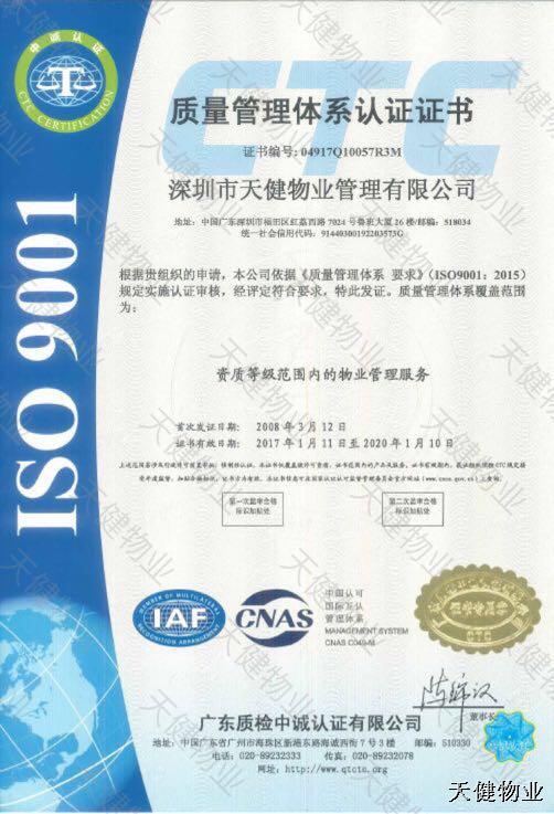 質(zhì)量管理體系認(rèn)證證書