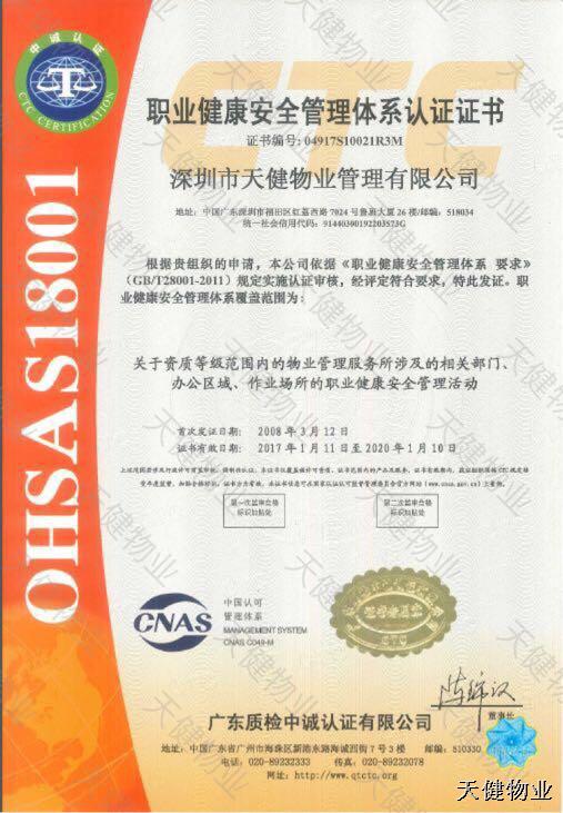 職業(yè)健康安全管理體系認(rèn)證證書