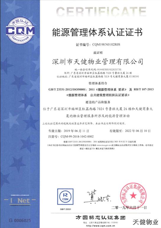 能源管理體系認(rèn)證證書
