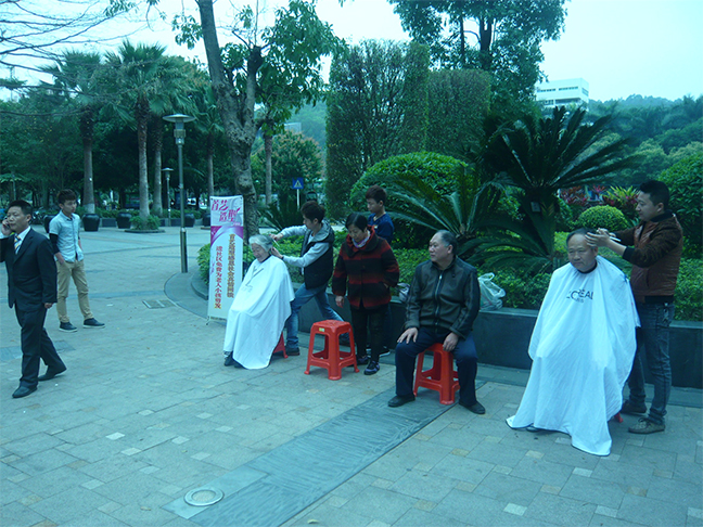 認(rèn)真給老年人理發(fā),老年朋友倍感溫暖