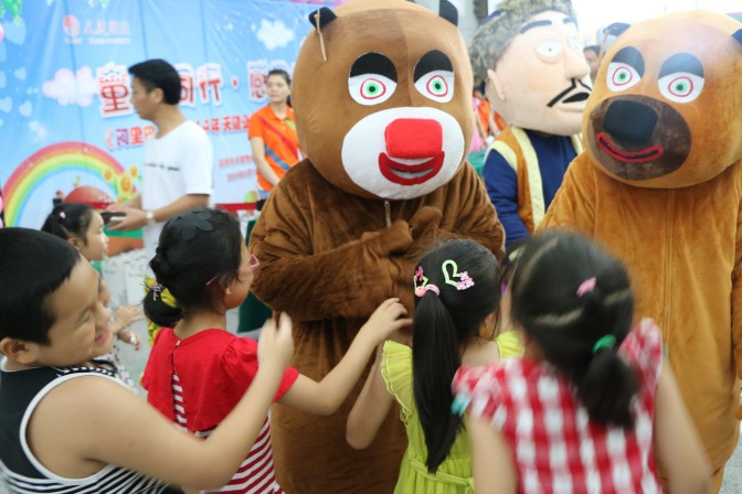 活動在6月1日下午三點(diǎn)開始舉行,在此之前公司總部同事和龍崗區(qū)現(xiàn)代城和陽光城的同事們早早的到達(dá)目的地布置現(xiàn)場,各方面的準(zhǔn)備都做的很充分,以便節(jié)目能夠順利的舉行.兩點(diǎn)半后業(yè)主們就陸續(xù)的到來,由同事們扮演的熊大、熊二和光頭強(qiáng)引來了眾多小朋友的喜愛,個(gè)個(gè)爭搶著要和他們合影.我們在現(xiàn)場還準(zhǔn)備了幾百份禮物,前來觀看的業(yè)主小孩憑禮品券即可到我們前臺領(lǐng)取精美禮品一份及我們最真誠的祝福!隨著大家陸續(xù)進(jìn)場,不一會兒功夫演播廳內(nèi)也早已人聲鼎沸,孩子們與家長一起等待著活動的開始。終于,伴隨著主持人李經(jīng)理的登臺,演出活動正式開始。主持人致于節(jié)日問候后,安排熊大、熊二、光頭強(qiáng)等和小朋友們互動玩了個(gè)“愛的抱抱”的游戲,游戲結(jié)束后由物業(yè)老總劉總給參與的小朋友們送上精美禮物,讓小朋友們臉上都樂開了花!在主持人的邀請下劉總上臺致詞,劉總首先向在場的小朋友們表達(dá)了真誠的祝福,并代表天健物業(yè)有限公司對前來參加活動的業(yè)主們表達(dá)了謝意,并且希望通過一系列的活動,為孩子們的健康成長盡綿薄之力,為孩子的成長提供更好的平臺。