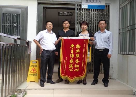 深圳市中原鐵道進出口有限公司擁有半島花園A區(qū)一棟56套房產(chǎn),是半島花園的大業(yè)主。日常管理中與管理處接觸溝通比較多,在10月份的消防大檢查中,半島管理處在維修、安管、清潔等服務(wù)方面都給予了很大的協(xié)助,中原鐵道公司領(lǐng)導(dǎo)對半島管理處的服務(wù)很滿意。檢查通過后,中原鐵道公司給管理處送來了“物業(yè)服務(wù)細心·業(yè)主倍感溫心”的錦旗!