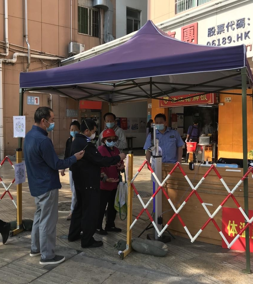 新冠肺炎確診病例近日在深圳增多,各小區(qū)的喇叭不知疲倦地呼喊“請(qǐng)到指定地點(diǎn)核酸檢測(cè)”,門崗都站立著戴口罩、穿防護(hù)服的物業(yè)人,提示“請(qǐng)出示健康碼”,這是深圳物業(yè)人的抗“疫”景象。