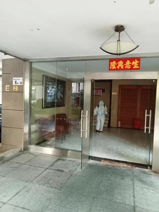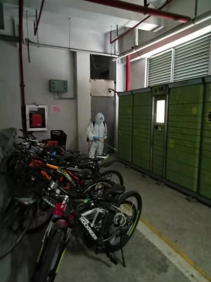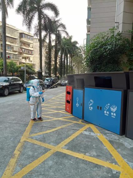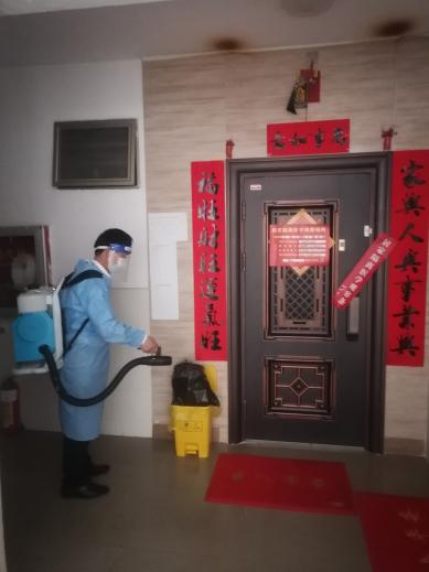 天剛放亮,泰源物業(yè)環(huán)境消殺的工作人員便開始消毒、消殺工作。居家隔離戶門前、樓道、垃圾站點(diǎn)、核酸采樣點(diǎn)等公共區(qū)域不遺漏。