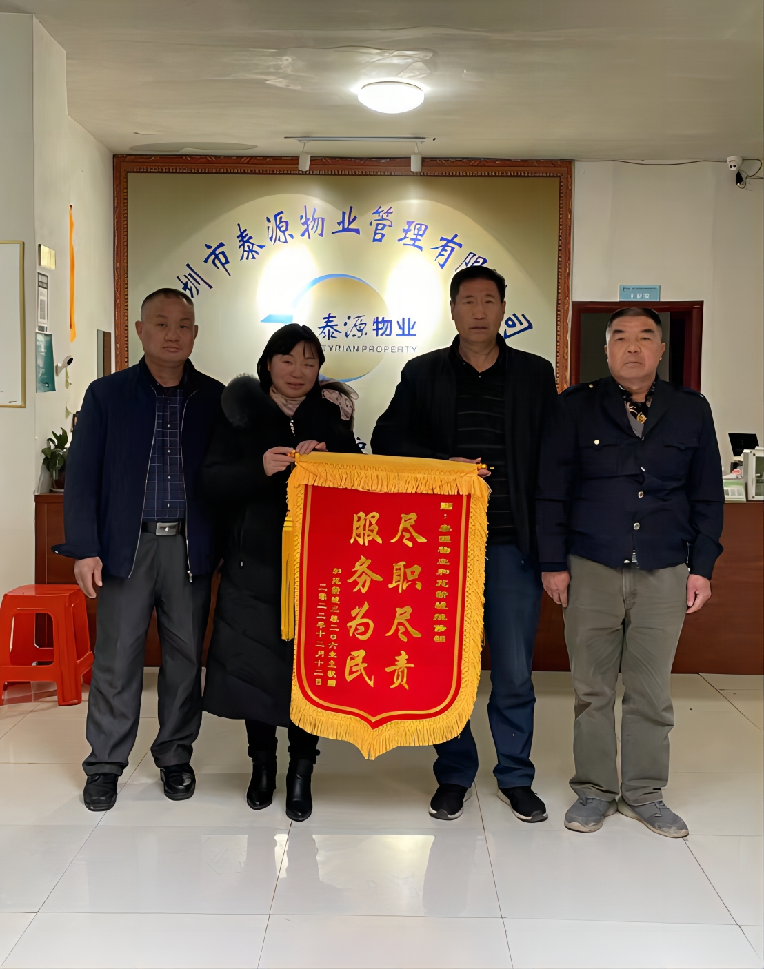 “客服中心急業(yè)主所急,服務(wù)溫暖業(yè)主的心”,特送一面錦旗致謝!
