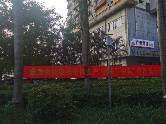 牽手團(tuán)圓渡中秋,普天同慶迎國(guó)慶,一年一度的中秋、國(guó)慶佳節(jié)即將到來,泰源物業(yè)各小區(qū)高掛彩旗、布置彩燈、懸掛橫幅。不僅扮靚了小區(qū),也成為了道靚麗的風(fēng)景線,讓業(yè)主家人們感受到了濃濃的節(jié)日氣氛。